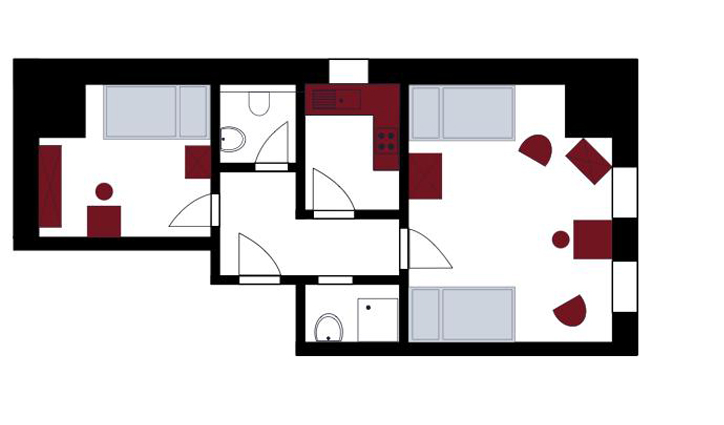 2-Zimmer-Ferienwohnung für 1 bis 3 Personen im Dachgeschoss